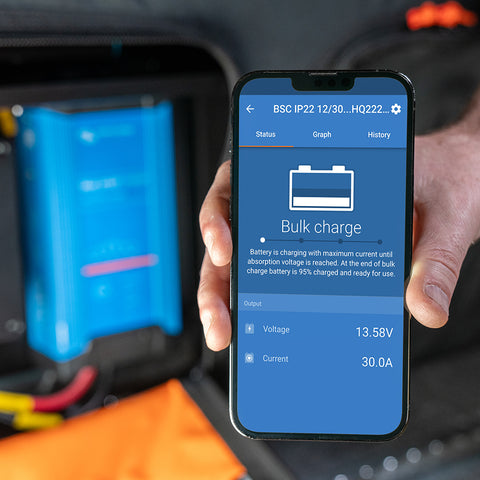 - Victron BlueSmart IP22 Charger w/ Bluetooth monitoring