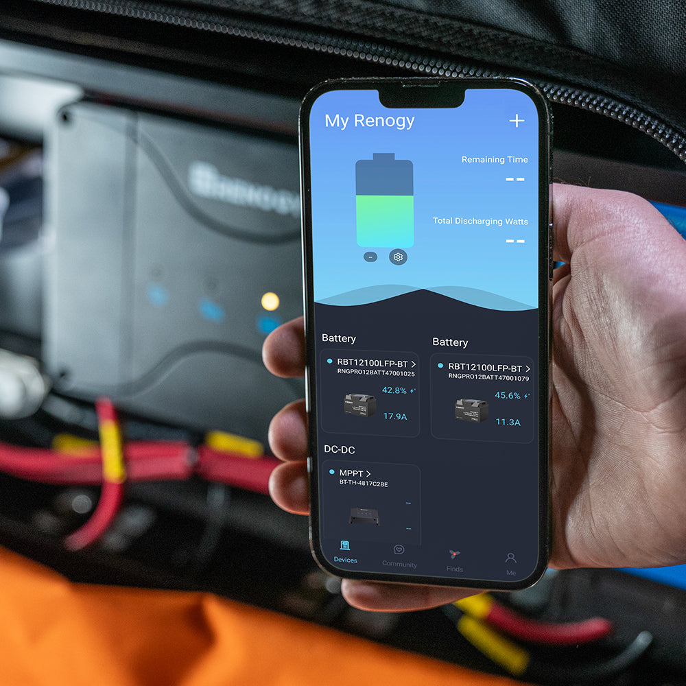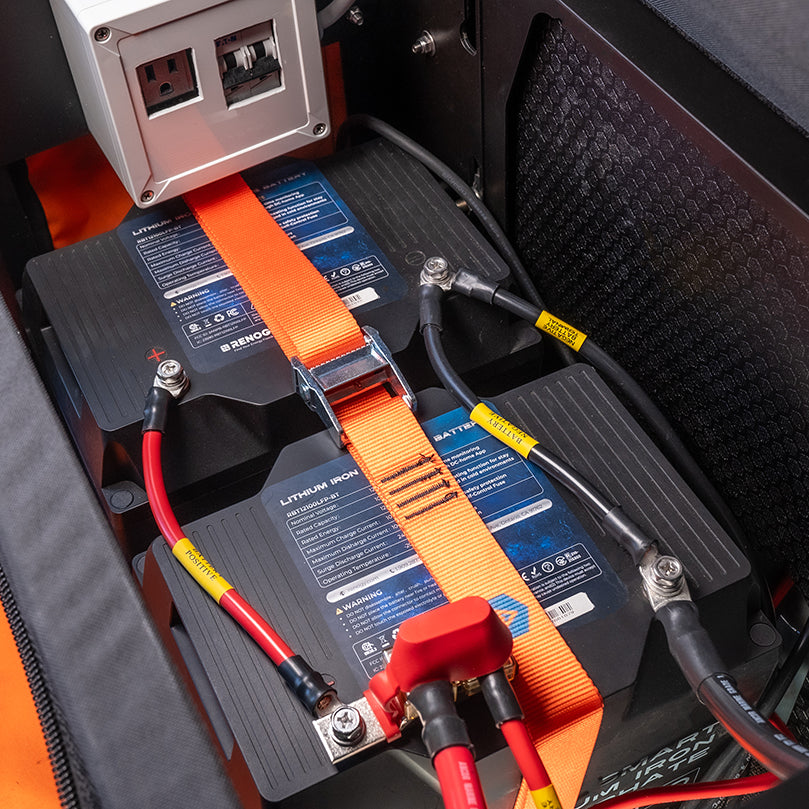 - Two 100 Ah Renogy smart lithium batteries