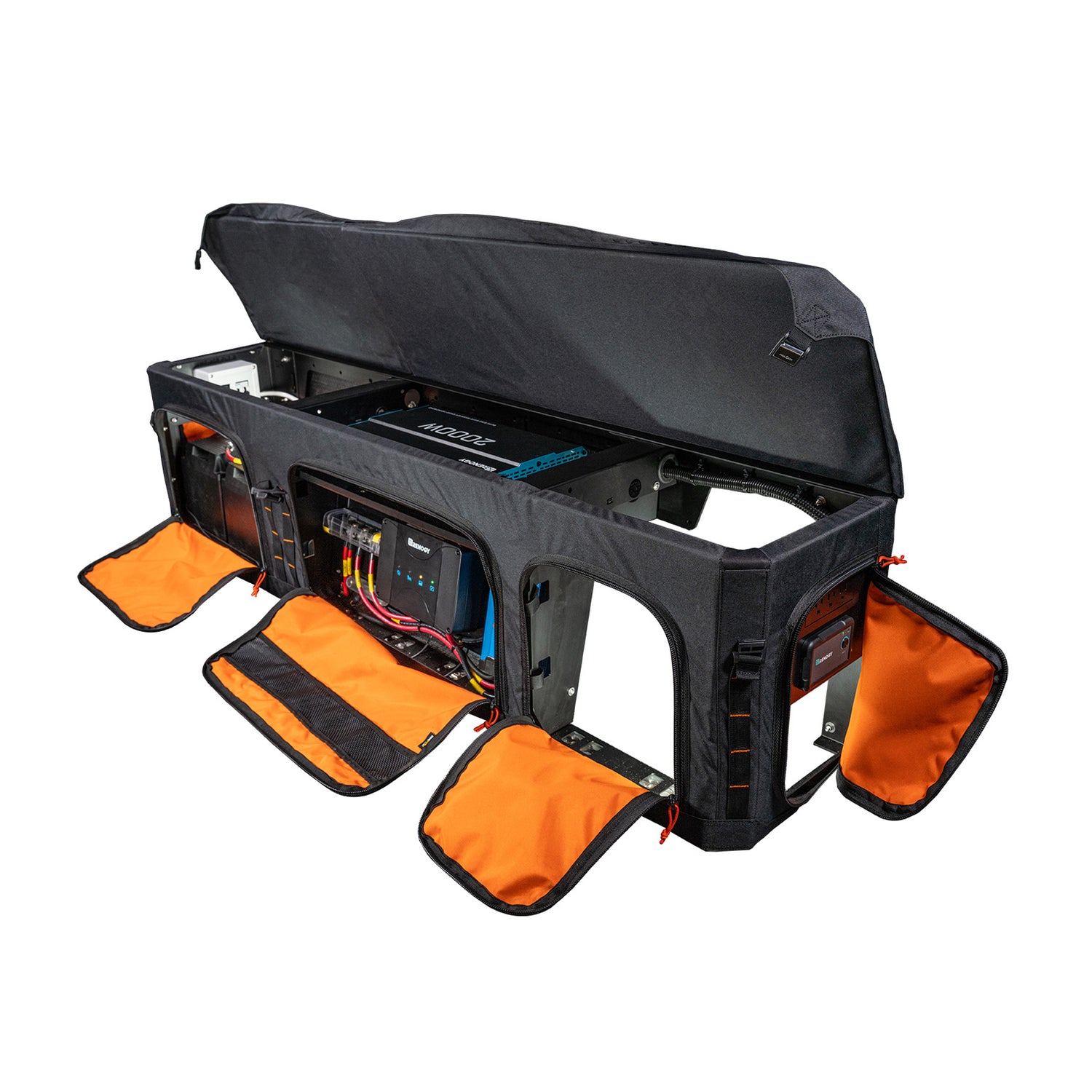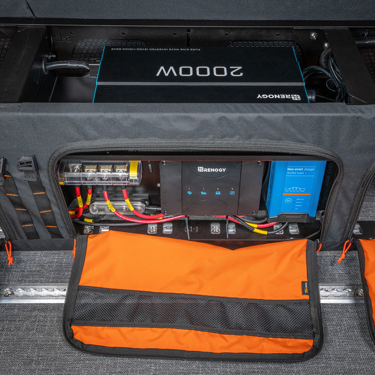 The Base Electrical System has everything you need to provide and monitor power, including Bluetooth connectivity and two Renogy Smart Lithium Batteries. The Adventure Wagon electrical mounting plate keeps your components organized and is easily fastened to the GOAT locker steel frame for a secure and clean installation.