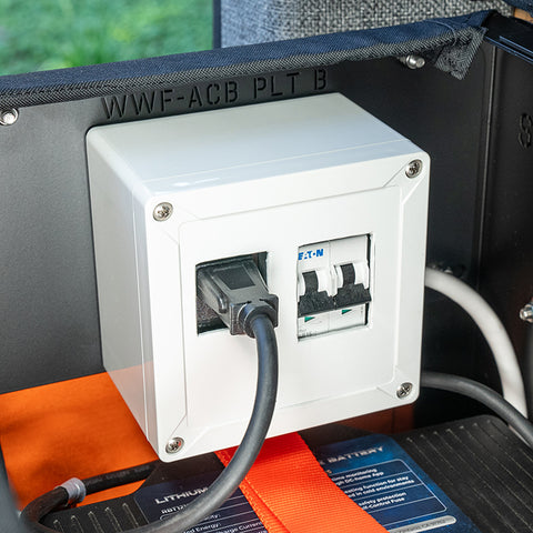 Our 200 Ah Electrical System includes everything you'll need to power your Adventure Wagon rig. It's housed in our unique and functional GOAT Wheel Well Storage Locker and has options for solar, shore power, and 120v inverter.