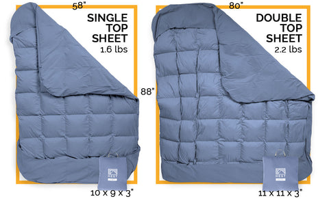 The HEST Down Comforter is made from 650 fill hydrophobic down and fits nicely over both the HEST 75S and AdWag MOAB mattresses. It comes with a compression sack for a packable, outdoor-ready design.