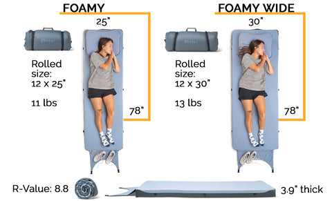 The Foamy is the camping mattress you have been waiting for; maximal comfort & support that rivals your home mattress in a packable, portable adventure-ready form.
