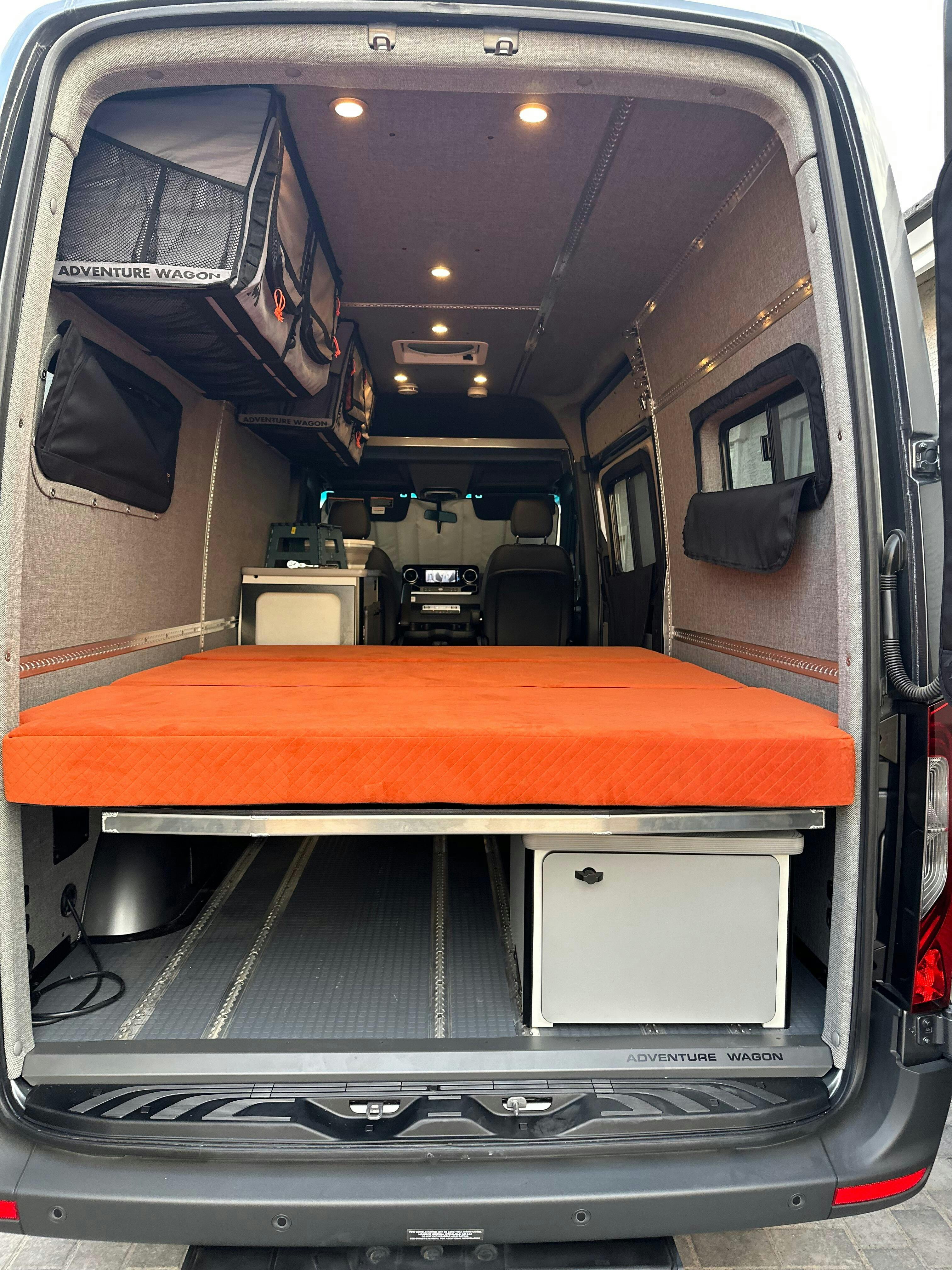 - Bed Install Kit V2 - Adventure Wagon's best, most flexible, installation option that allows floor-to-ceiling height adjustment, Flarespace compatibility, and enables future upgrade to our complete Modular Interior System.