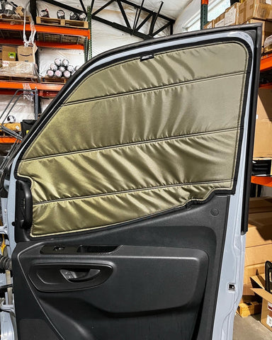Our Front Driver/Passenger Window Covers are designed to provide complete privacy and temperature control for your van’s cab. The covers magnetically attach to the door frames—no drilling required—and can be quickly folded and stowed when not in use. The graduated fold lines ensure a compact fit and easy handling for daily use.