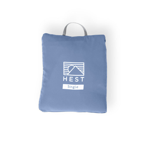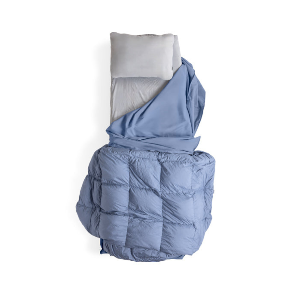 As comfortable as your home top sheet but built for life outside, the HEST Top Sheet is designed to pack into itself to stay neat and clean while traveling. When in sleep mode, it integrates seamlessly with the HEST Down Comforter using corner flaps and toggles for added comfort and convenience. For a more traditional home-style top sheet feel, simply leave the top toggles unattached.