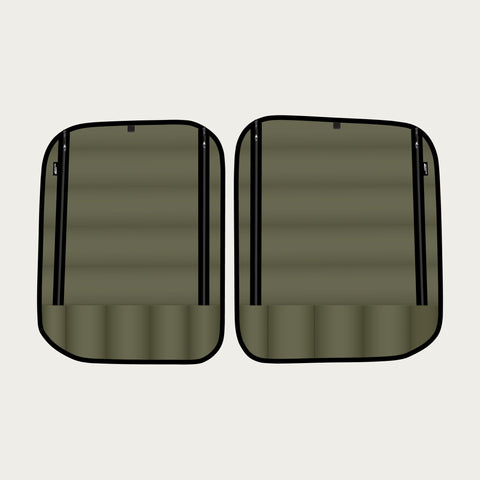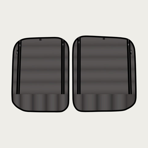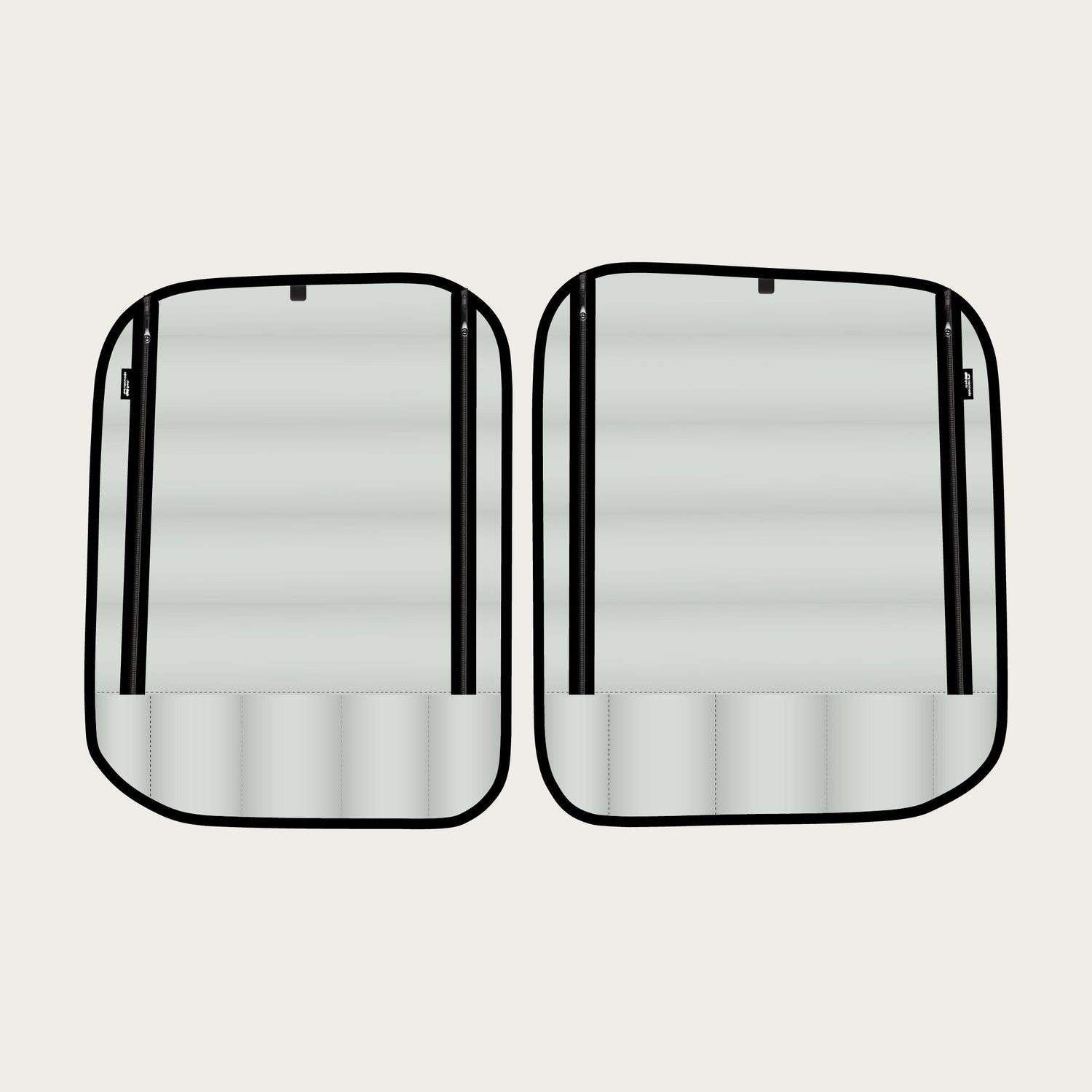 These zippered rear door shades for the 2015+ Transit mid/high roof models attach magnetically to the window frame, creating the ultimate comfort and privacy for you on the road. This set features dual-side zip access, allowing for eye-level window views.