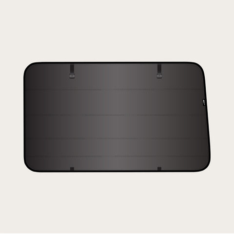 The design allows for compact stowing and the option to keep the shade mounted when not in use. Please confirm your window type and select the correct version for stock, aftermarket, Motion, or CRL windows. For assistance, feel free to contact us.